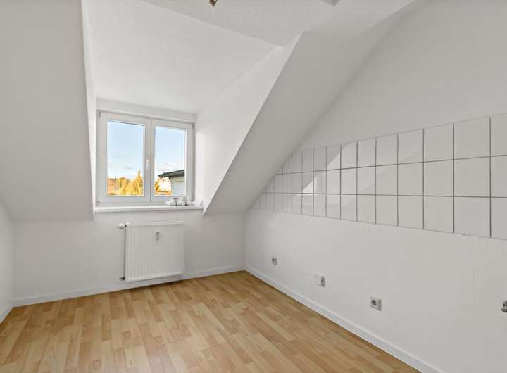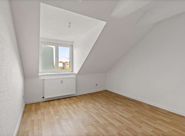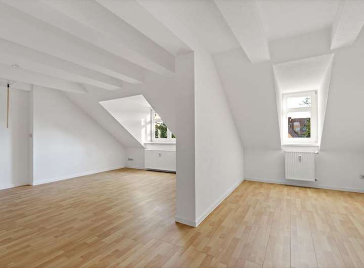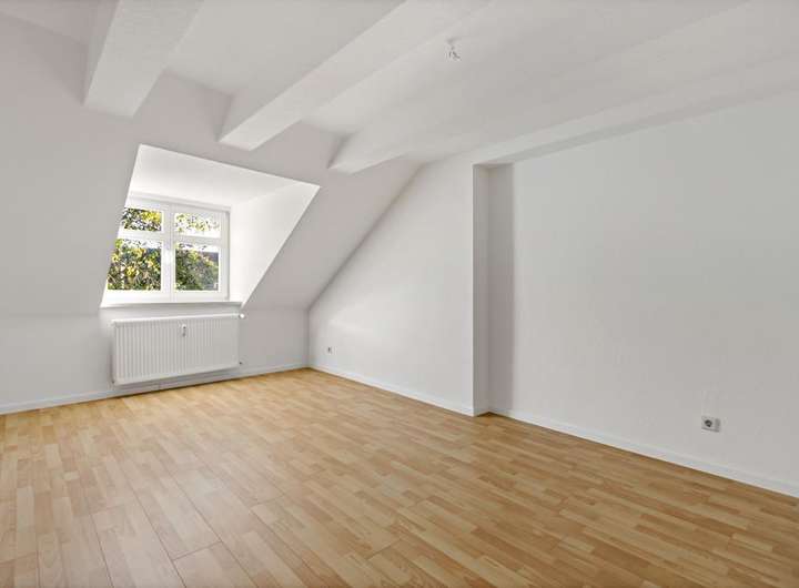 Die großzügige 3-Raum-Dachgeschosswohnung in Weißenfels bietet mit etwa 85 m² viel Platz zum Wohlfühlen. Der Grundriss ist durchdacht gestaltet und sorgt für eine angenehme Wohnatmosphäre. Mittelpunkt der Wohnung ist das große, charmante Wohnzimmer, das durch seine Dachschrägen und den weiten Schnitt besonders gemütlich wirkt.