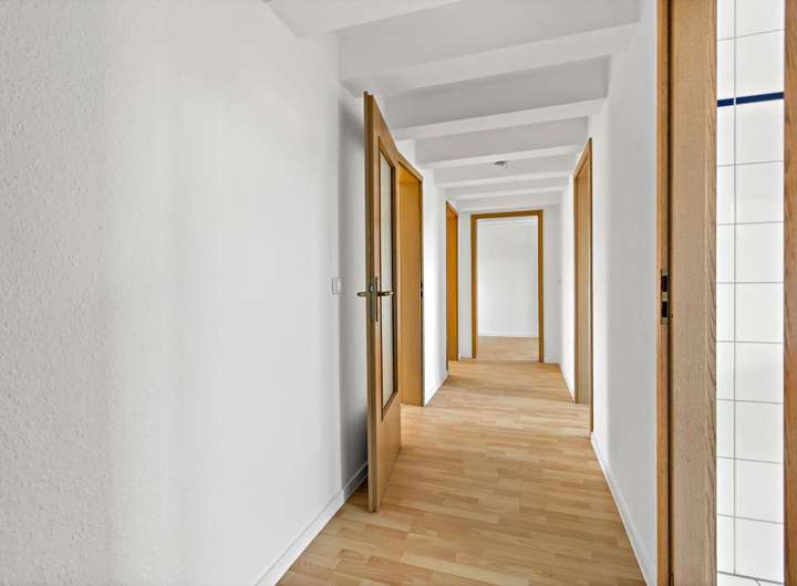Auch der Flur ist großzügig gestaltet und bietet viel Platz für Garderobe, Stauraum oder eine kleine Sitzecke. Die Wohnung kombiniert Offenheit, Helligkeit und eine komfortable Raumaufteilung – ideal für Paare, kleine Familien oder alle, die ein weitläufiges Dachgeschoss in ruhiger Lage von Weißenfels suchen.