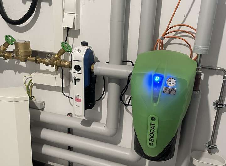 Für behagliche Wärme und Warmwasser sorgt eine umweltfreundliche Luftwärmepumpe von Buderus. Die Zu- und Abwasseranschlüsse wurden bis ins Dachgeschoss gelegt, so dass hier noch der Einbau eines weiteren Bades möglich ist.