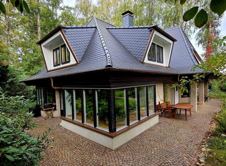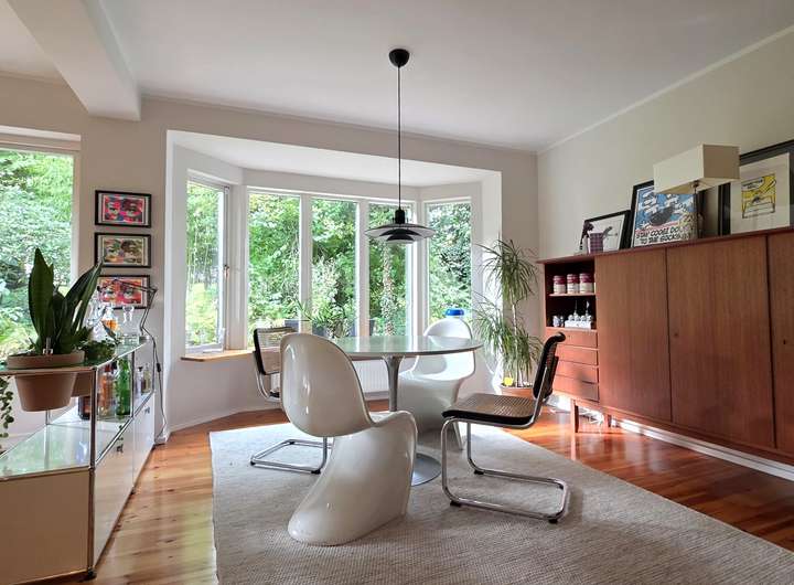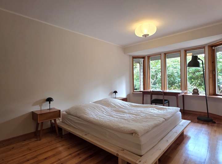 Das Haus erstreckt sich über zwei Ebenen und beeindruckt durch seine offene und zugleich gemütliche Gestaltung. Großzügige Wohnflächen bieten genug Platz für unterschiedlichste Lebensformen: Familie, Arbeiten von zuhause oder Rückzugsorte. Zahlreiche Fensterfronten sorgen für viel Tageslicht und eine angenehme Atmosphäre. Hochwertige Holzfußböden und liebevolle Details unterstreichen den Charakter des Hauses.