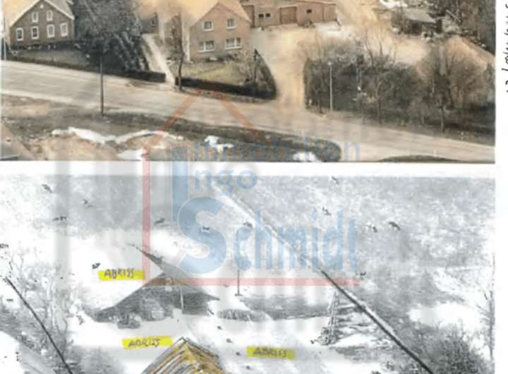 Zurzeit befinden sich eine alte Scheune, ein Güllekeller sowie weitere zurückgelassene Materialien und Gebäude noch auf dem Grundstück. Die Rückbauarbeiten der noch vorhandenen Bebauung, davon ausgenommen das Einfamilienhaus, übernimmt die Firma Junker & Auen.