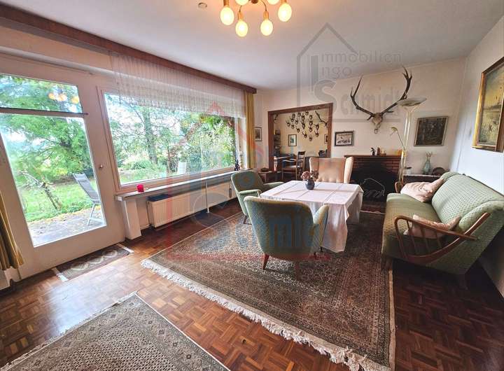 Willkommen zu diesem Einfamilienhaus, das im Jahr 1964 erbaut und 1971 mit einem Anbau erweitert wurde. Mit einer Wohnfläche von 158m² auf einer Grundstücksfläche von 1.713m² bietet dieses Haus viel Platz für Ihre Familie. Das Gebäude erstreckt sich über zwei Etagen und verfügt zudem über drei Kellerräume. Der Dachboden bietet großzügige Lagermöglichkeiten. Eine Gas-Heizung sorgt für wohlige Wärme in den kalten Monaten. Im Wohnzimmer sorgt der offene Kamin für eine gemütliche Atmosphäre. Der Balkon mit Südausrichtung lädt dazu ein, die Aussicht auf den großzügigen Garten und den freien Blick auf die umliegenden Felder zu genießen. Darüber hinaus stehen zwei Parkplätze und eine Garage zur Verfügung.