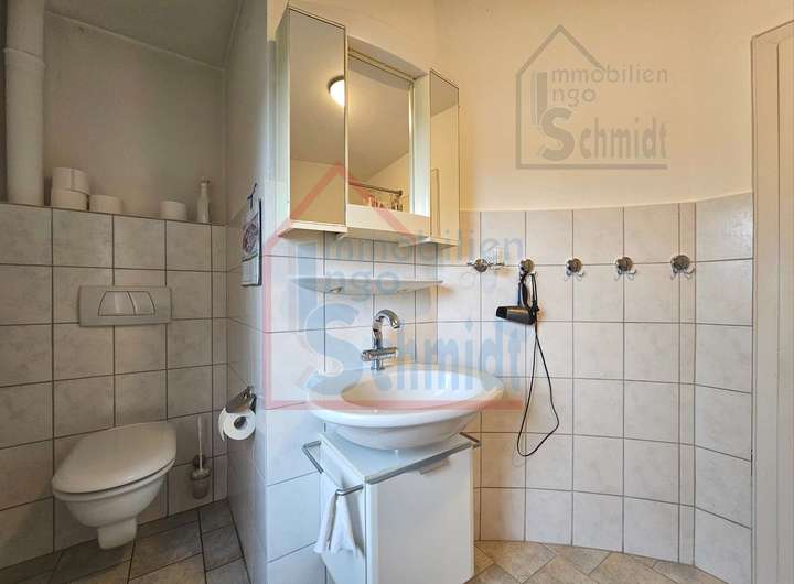 Das Haus verfügt über insgesamt 8 Zimmer, von denen 5 als Schlafzimmer genutzt werden können. Ein Badezimmer mit Badewanne, Dusche & WC sowie ein separates Gäste-WC stehen zur Verfügung. Die Räumlichkeiten bieten ausreichend Platz für individuelle Gestaltungsmöglichkeiten und geben viel Raum für Kreativität. Durch das schiefhüftige und asymmetrische Satteldach sind keine Schrägen im Obergeschoss vorhanden, so dass das Mobiliar hervorragend Platz findet.