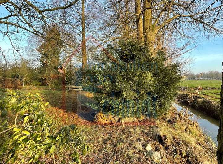 Der weitläufige Garten auf der sonnigen Südseite umfasst eine große Rasenfläche, einen Teich und Stauden- und Rosenbeete. Unterschiedlichste Baumarten, wie z.B. Obstbäume, Eichen, Buchen, Lärchen, Zypressen, Mammutbaum, Walnuss, prägen ein Grundstück, wie es in Weener in dieser Form selten zu finden ist. Eine dichte Rhododendronhecke im Norden grenzt das Grundstück zur Straße hin ab. Die großzügige Grundstücksfläche lässt es zu, Gemüsebeete anzulegen.
