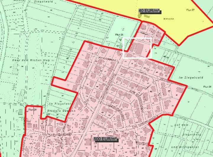 Der Bodenrichtwert liegt bei 500 €/m². Gebote darunter können nicht berücksichtigt werden.