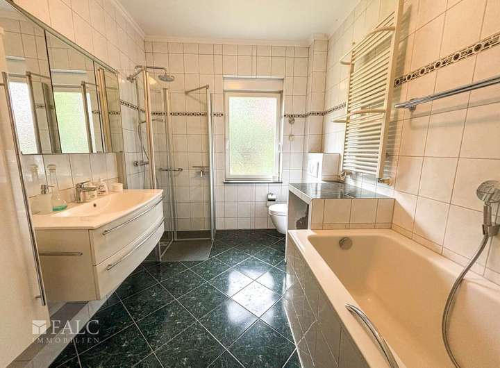 Auch technisch überzeugt das Haus auf ganzer Linie: Eine Solarthermieanlage mit einem Speicher von ca. 300 Litern senkt die Energiekosten. Die Gastherme stammt aus dem Jahr 1998. Eine Fußbodenheizung im Erdgeschoss garantiert eine angenehme Wärme. Die Böden sind teils gefliest, in den Wohnräumen sorgen neue, hochwertige Bodenbeläge für ein modernes und behagliches Wohngefühl. Besonders hervorzuheben ist, dass in mehreren Räumen im Erdgeschoss – darunter Schlafzimmer, Küche und Büro – die Böden erneuert wurden, was dem Haus ein frisches, zeitgemäßes Ambiente verleiht.