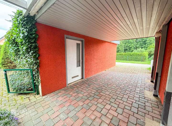 Für Ihre Fahrzeuge stehen eine Garage und ein Carport zur Verfügung. Direkt hinter der Garage befindet sich zusätzlich ein praktischer Geräteschuppen – ideal für Gartengeräte oder Heimwerker bedarf.