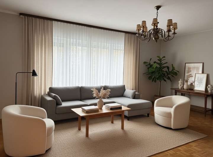Der großzügige Wohnbereich ist durch eine Tür vom Essbereich getrennt, der einen direkten Zugang zur Terrasse bietet und dank großer Fenster viel Licht hereinlässt. Hier entsteht Raum für gemeinsame Momente und entspannte Stunden. Die Küche liegt direkt am Esszimmer, was kurze Wege im Alltag ermöglicht. Ein zusätzliches Zimmer ist flexibel als Büro oder Gästezimmer nutzbar.