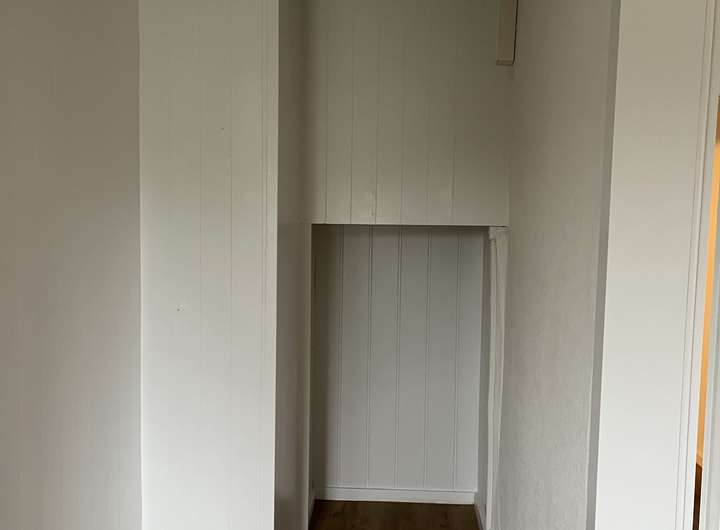 Im Schlafzimmer befindet sich ein Einbauschrank, der genug Platz für diverse Kleidungsstücke bietet.