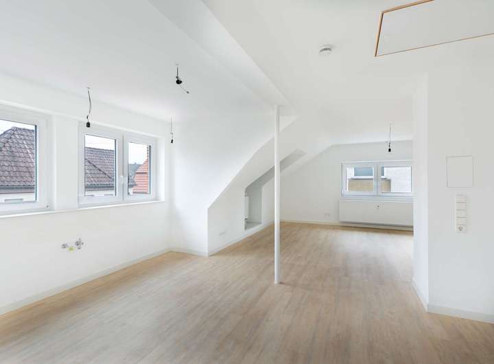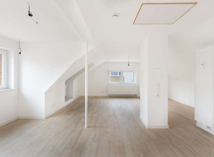 In einem ruhigen Wohngebiet von Hoheneck befindet sich diese stilvolle Dachgeschosswohnung in einem Wohnhaus, das im Jahr 2024 umfassend und energetisch modernisiert wurde.