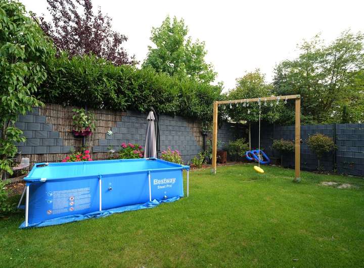 Der Garten ist ansprechend groß und dennoch pflegeleicht. Durch die Einfriedung mit einem modernen Gartenzaun und bereits bestehender nachbarschaftlicher Bepflanzung, ist der Garten blickgeschützt und bietet Sonnen- sowie Schattenplätze. Unter der elektrischen Markise lassen Sie entspannt den Abend ausklingen.