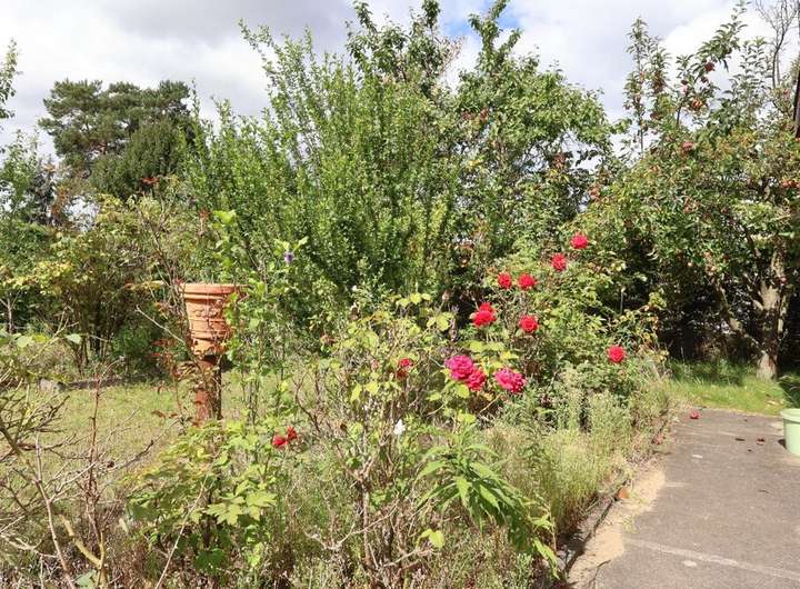 Dieses wunderschöne Grundstück ist derzeit noch mit einem zum Abriss bestimmten Bungalow, einer Garage und Nebengelass bebaut. Gemäß den Vorgaben der Gemeinde eignet sich das Grundstück vorzüglich zur Bebauung mit einem freistehenden Einfamilienhaus, welches sich nach § 34 BauGB in die Nachbarschaft optisch und auch von der Größe einfügen müssen. Alle Kosten der Beräumung und des Abrisses trägt der Käufer.