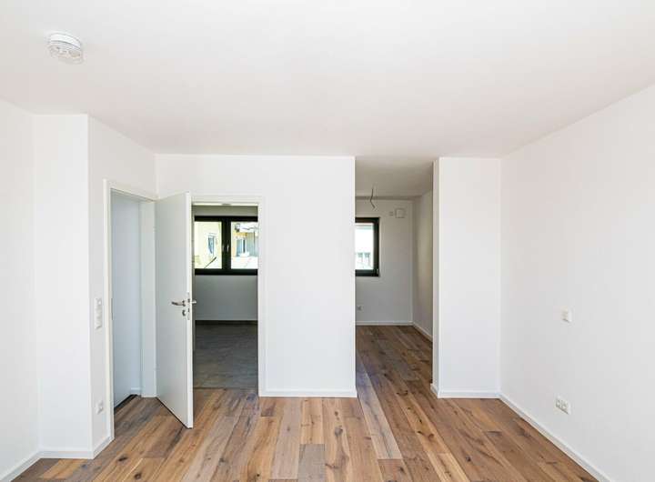 Das zweite Obergeschoss ist als exklusiver Elternbereich konzipiert. Hier finden Sie ein großzügiges Schlafzimmer mit angrenzender Ankleide und Zugang zum eigenen Elternbad. Die moderne Ausstattung des Bads garantiert Komfort und Privatsphäre. Von hier aus eröffnet sich Ihnen außerdem der Zugang zu einem Balkon, der einen schönen Rückzugsort bietet.