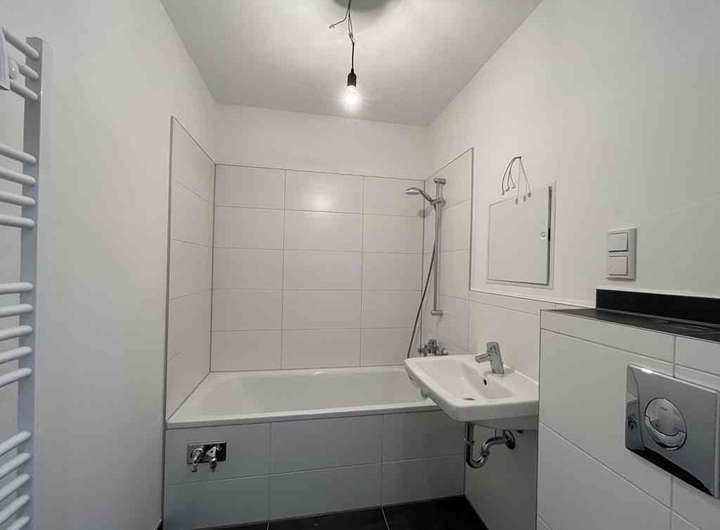 - gefliestes Wannenbad mit allen notwendigen Anschlüssen