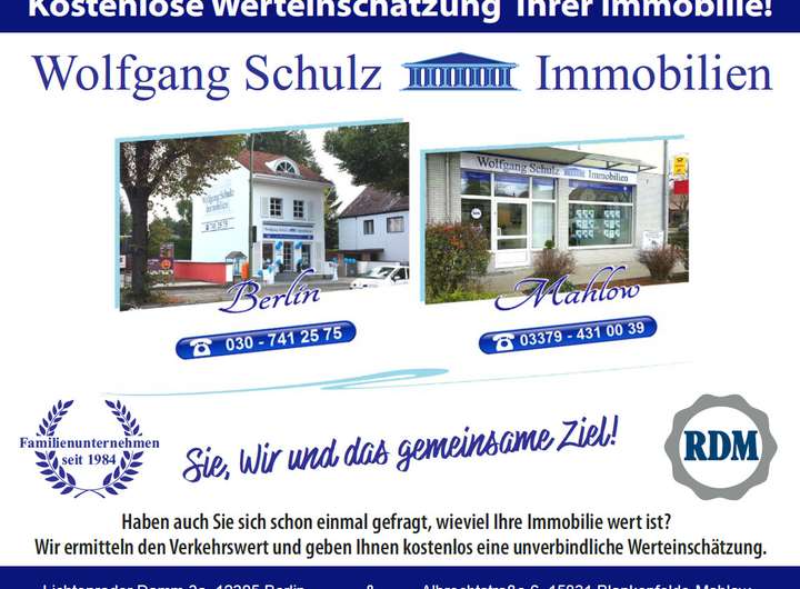 Ausführliche Exposés werden nur bei vollständiger Adressangabe verschickt. Wir bitten um Ihr Verständnis. Weitere Immobilienangebote können Sie hier einsehen: www.wolfgang-schulz-immobilien.de
