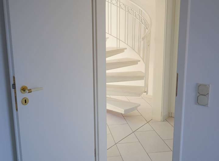 Zur Ausstattung gehören u. a. helle Marmorböden in Wohn-/Essbereich und Bad, weiße Bodenfliesen in Gäste-WC und Küche, geschmackvolle Designbeläge auf der Galerie und im Schlafzimmer, ein NV-Lichtsystem im Wohn-/Essbereich, verschiedene Einbauten, Downlights, eine Einbauküche, elektrifizierte Rollläden, offener Kamin, ein Außengrill, eine Videogegensprechanlage, Klimageräte und ein Breitbandkabelanschluss. Nur einen Lift gibt es nicht. Aber natürlich steht ein Kellerraum zur Verfügung. Die Beheizung erfolgt über eine 2023 erneuerte Gas-Zentralheizung.