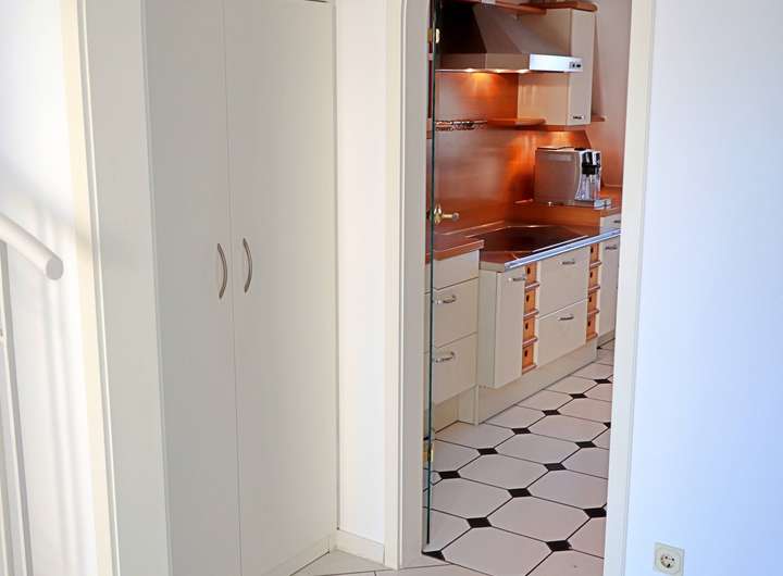 Die Küche ist mit einer Einbauküche ausgestattet. Das große Induktionskochfeld, der Backofen und die Mirowelle sind neuwertig. Ferner steht eine Spülmaschine zur Verfügung. Lediglich eine Kühlschrank muss von Ihnen ergänzt werden. Platz für eine größeres Side-by-side-Gerät ist vorhanden und es gibt einen Frischwasseranschluss im Bereich des Kühlschranks.