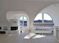 Zurückgekehrt zum Wohn-/Essbereich nehmen Sie die Treppe zur großartigen Galerie. Mit offenem Kamin und Zugang zur wunderbaren Dachterrasse mit Barbecue ist sie ein echtes Highlight.