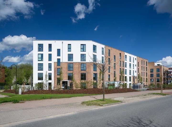 Auf dem großzügigen Grundstück in der Otto-Siege-Straße/Tönningweg entstanden insgesamt 103 moderne Mietwohnungen mit Tiefgaragen- und Außenstellplätzen. Das Objekt liegt in einer ruhigen Anliegerstraße. Im autofreien und grünen Innenhof befindet sich ein großer Spielplatz. Die vielseitigen Grundrisskonzepte bieten Wohnungen von kompakten 2 Zimmern bis familienfreundlichen 4 Zimmern. Alle Wohnungen verfügen über eine Terrasse, einen Balkon oder eine Dachterrasse. Die Treppenhäuser sind mit Personenaufzügen ausgestattet, welche einen direkten Zugang in die Tiefgarage und die Kellerräume ermöglicht. Die Gegensprechanlangen der Wohnungen verfügen über Kameras. Zudem steht ein großzügiger Fahrradkeller für die Mieter zur freien Verfügung. Das Zentrum von Ahrensburg ist vom Objekt aus in wenigen Minuten erreichbar.