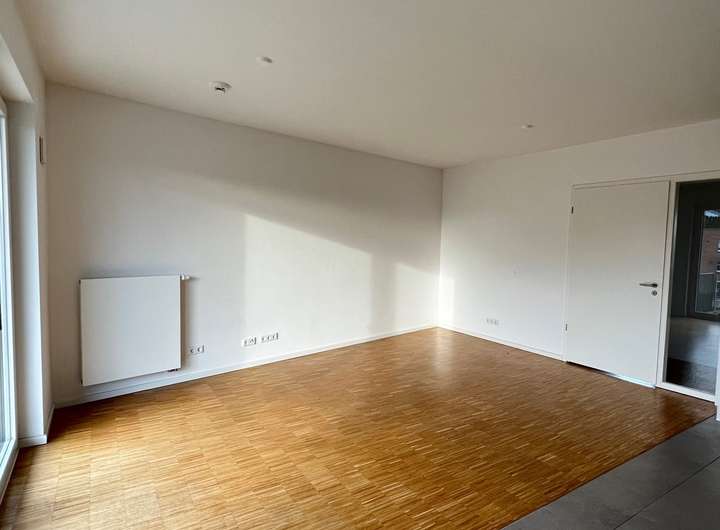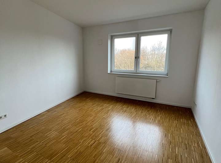 Der Wohnbereich ist mit einem edlen Parkettboden ausgestattet, der den Räumen eine warme und zugleich elegante Atmosphäre verleiht. Die offene Gestaltung der Wohnküche und des angrenzenden Wohnzimmers schafft eine großzügige, lichtdurchflutete Raumwirkung, die besonders durch die großen Fensterflächen unterstützt wird.
