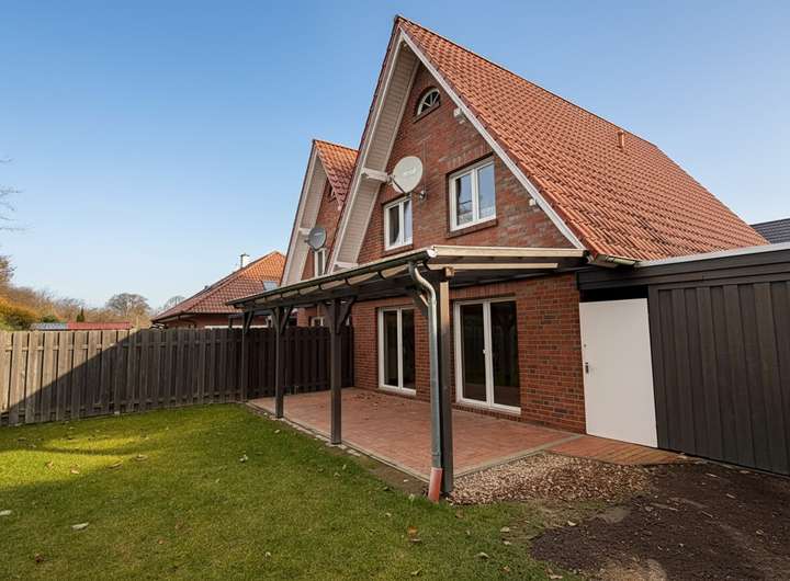 Das Grundstück umfasst ca. 318 m² und bietet vielfältige Möglichkeiten für individuelle Gestaltungsideen – ob Spielfläche für Kinder, ein eigener Gartenbereich oder ein ruhiger Platz zum Entspannen. Ergänzt wird das Angebot durch einen großzügigen Carport mit integriertem Geräteraum, der zusätzlichen und wettergeschützten Stauraum für Fahrräder oder Gartengeräte bietet.