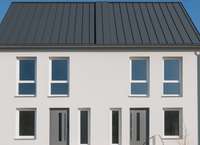 Die Doppelhäuser sind mit heller Putzfassade, bodentiefen großen Fenstern für viel natürliches Licht in den Wohnräumen