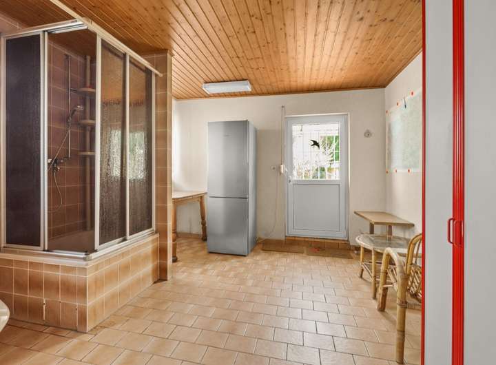 Helle Räume, ein gepflegtes Naturholztreppenhaus und klassische Details wie die Biberschwanz-Dachziegel verleihen der Immobilie ihren unverwechselbaren Charakter. Der weitläufige Garten mit gemauerter Hobbywerkstatt (ca. 15 m²) lädt zum Entspannen und Genießen ein. Zwei Garagen bieten zusätzlichen Komfort.