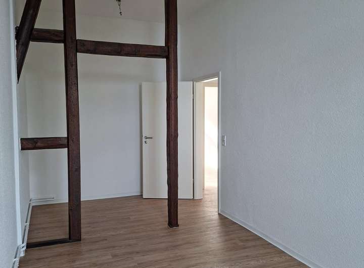 Diese vollständig sanierte 4-Zimmer-Wohnung im ersten Obergeschoss eines gepflegten Mehrfamilienhauses kombiniert modernen Komfort mit historischem Charme. Auf großzügigen 100 m² bietet die Wohnung viel Platz für Ihre persönlichen Gestaltungsmöglichkeiten. Besonders hervorzuheben sind die sichtbaren Fachwerkbalken und der Stuck die der Wohnung eine warme und gemütliche Atmosphäre verleihen.