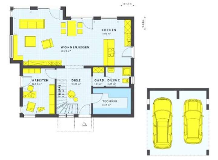 Das abgebildete Haus und die Grundrisse sind nur eine von vielen Möglichkeiten.
