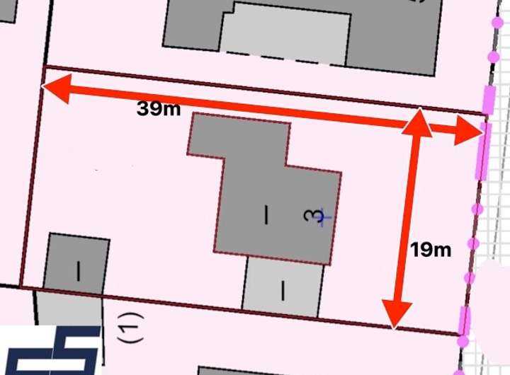 Das Grundstück hat eine Breite von 19 Metern und eine Tiefe von 39 Metern (742qm).