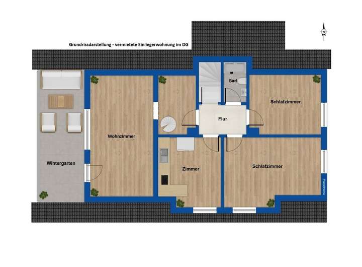 - vermietete Einliegerwohnung: attraktive Mieterträge oder flexibler zur Eigennutzung