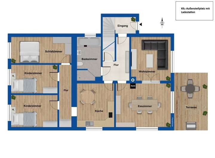 - Ladestation und elektr. Tor, am vorderen Stellplatz, kleine PV-Anlage