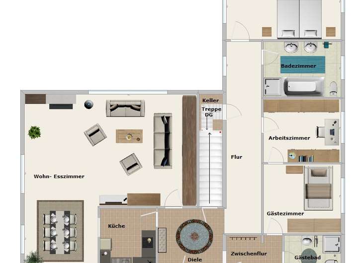• Fußbodenheizung im gesamten Erdgeschoss, Heizkörper im Keller