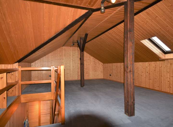 • massive Holztreppe als Aufgang zum Dachgeschoss