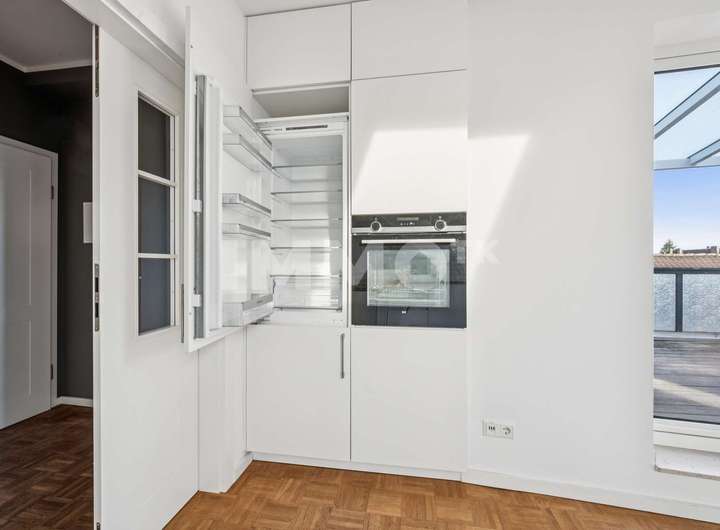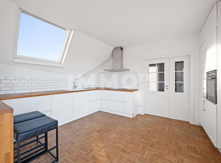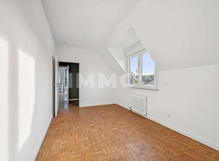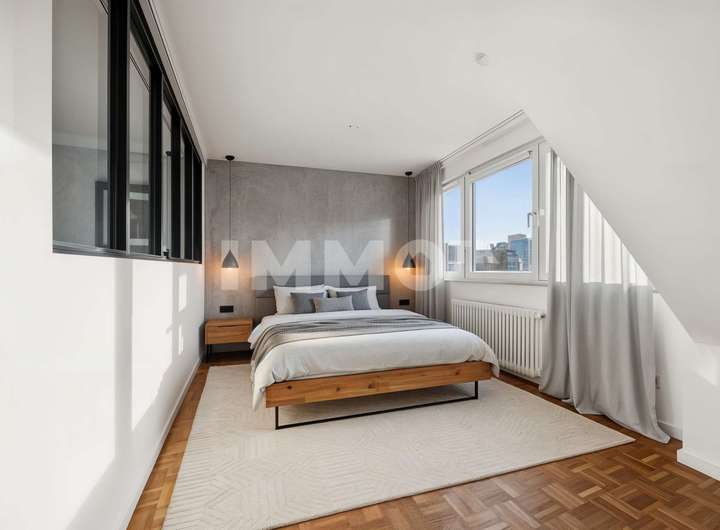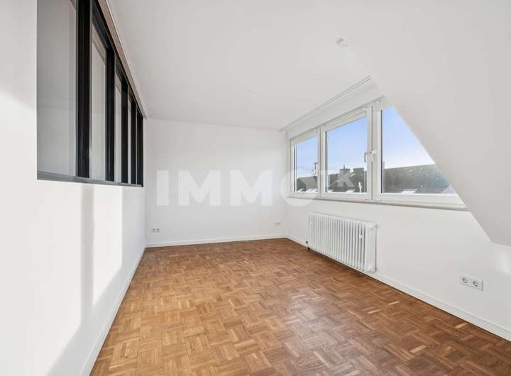 Dank der intelligenten Architektur des Hauses stören trotz Dachgeschosslage kaum Dachschrägen – ein deutlicher Vorteil für Stellmöglichkeiten und Raumgefühl. Alle straßenseitigen Fenster wurden modernisiert und entsprechen aktuellen energetischen Standards; elektrische Jalousien sorgen für zusätzlichen Komfort.