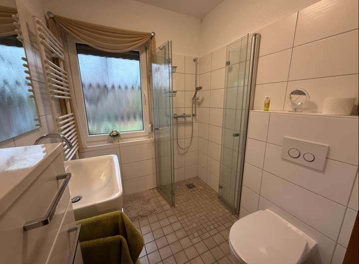 Das Badezimmer im EG wurde in ca. 2015 modernisiert. Es verfügt über eine ebenerdige Dusche.
