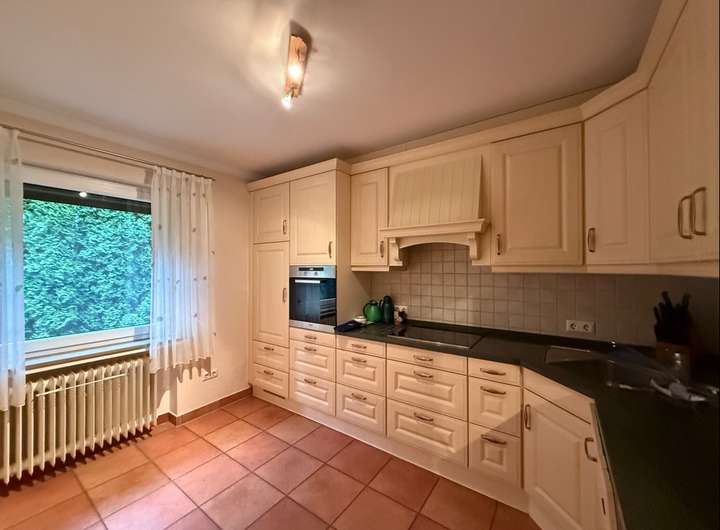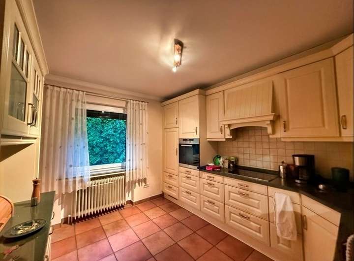 Die zeitlose Einbauküche stammt ca. aus dem Jahr 2005.