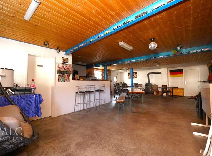 Ihr neues Zuhause befindet an einer ruhigen Nebenstraße in Heilbronn-Biberach. Parken Sie bis zu 20 Fahrzeuge in der Garage, der Scheune oder der Maschinenhalle, weitere Abstellmöglichkeiten finden Sie im Hof. Reparieren und Warten erfolgt bequem und kostengünstig in den Räumlichkeiten der Maschinenhalle. Erweitert wird diese ungewöhnliche Männerhöhle durch einen über 66 m² großen Hobbyraum mit Gäste-WC, hier können Sie richtig groß feiern.