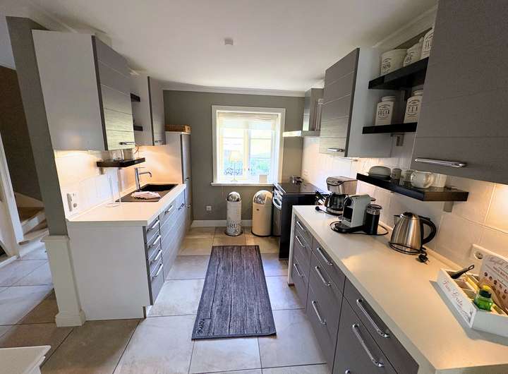 Große Fensterfronten lassen viel Tageslicht in die Wohnräume und bieten schöne Ausblicke auf die umliegende Naturlandschaft. Das Objekt verfügt über drei komfortable Schlafräume und zwei Badezimmer, die alle mit modernen Annehmlichkeiten ausgestattet sind. Die zum Wohnraum halb offene Küche ist ein Traum für jeden Kochbegeisterten und bietet alles, was man für die Zubereitung köstlicher Mahlzeiten benötigt. Ein geräumiges Wohn- und Esszimmer lädt zum Entspannen und Verweilen ein. Ein weiteres Highlight des Hauses ist die geräumige Sauna mit Dusche, die sich im Keller des Hauses befindet. Hier können Sie nach einem ereignisreichen Tag an der frischen Nordseeluft zur Ruhe kommen und sich in privater Atmosphäre entspannen.