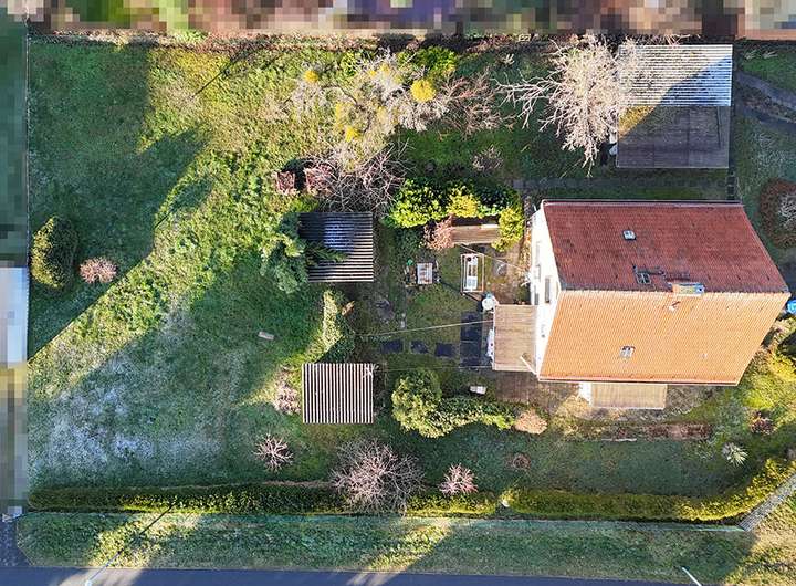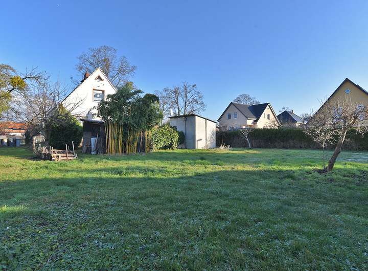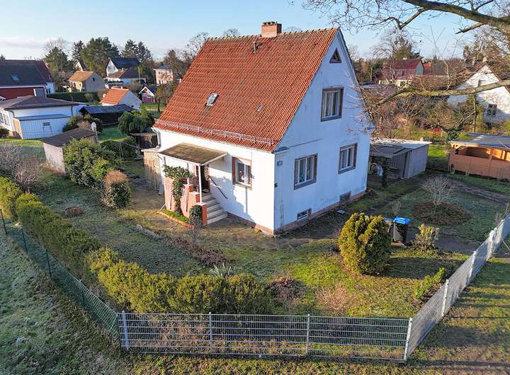 - auf dem vorderen Grundstücksbereich befindet sich ein altes, unterkellertes Wohnhaus (Abriss) sowie eine Garage aus Metall