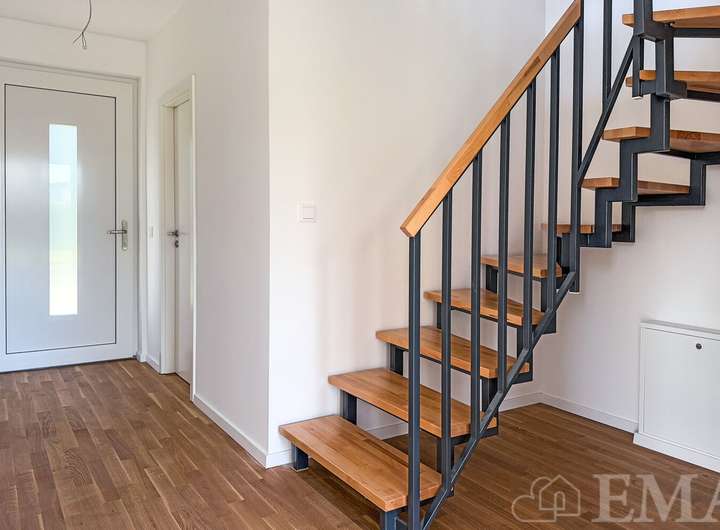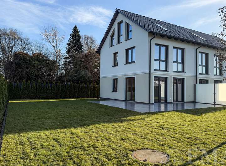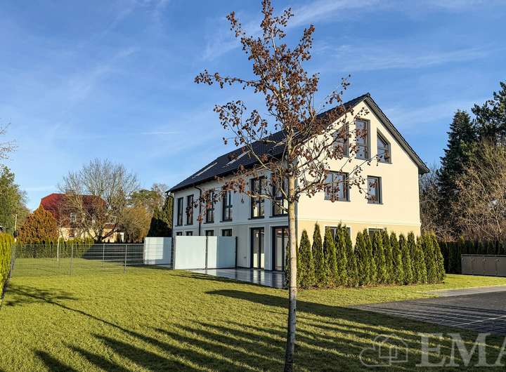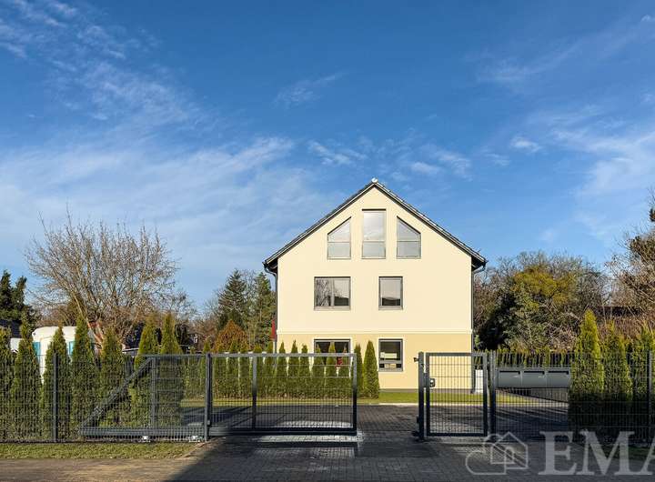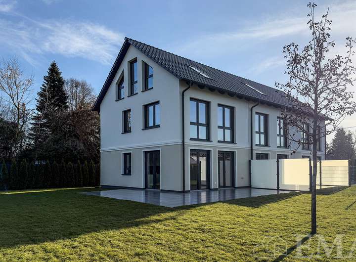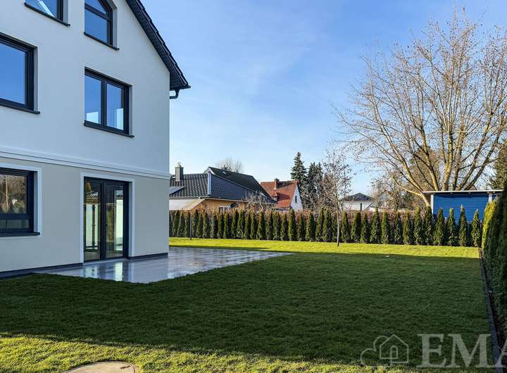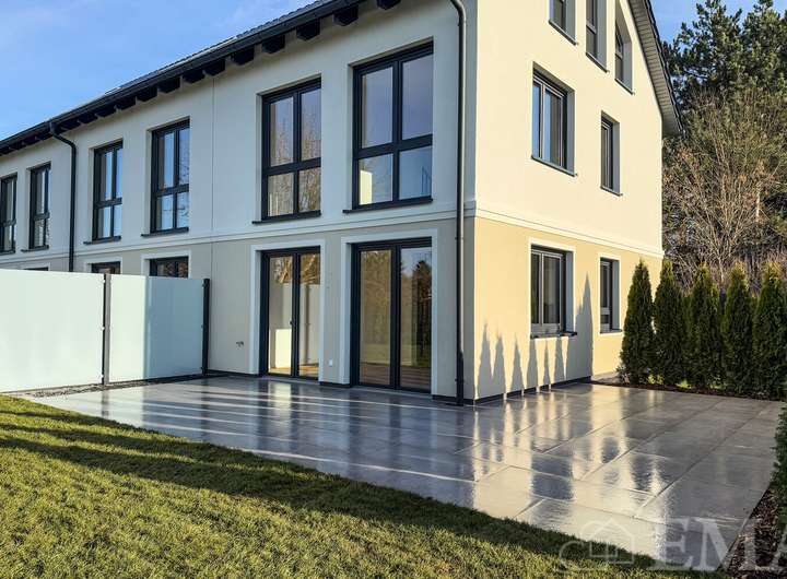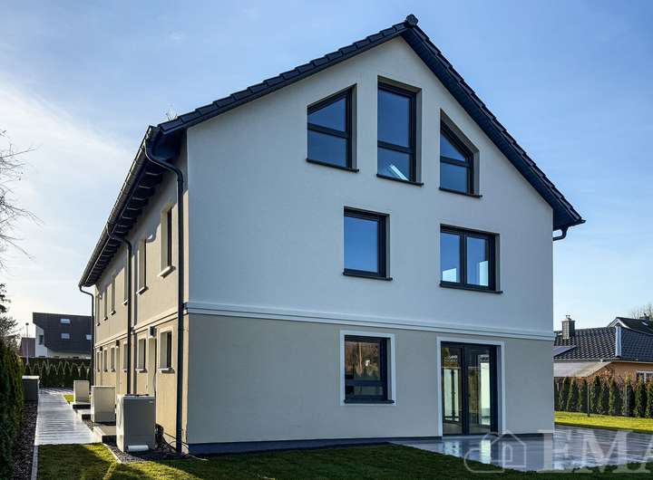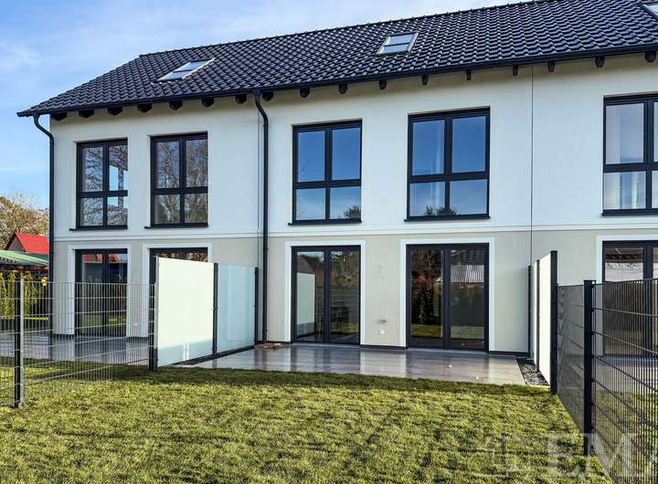 Das moderne Reihenhaus befindet sich in einer begehrten Wohnlage nur wenige Gehminuten von der Reit- und Poloanlage Falkensee-Finkenkrug entfernt. Es wurde im 2025 in moderner Architektur und grundsolider Massivbauweise errichtet.