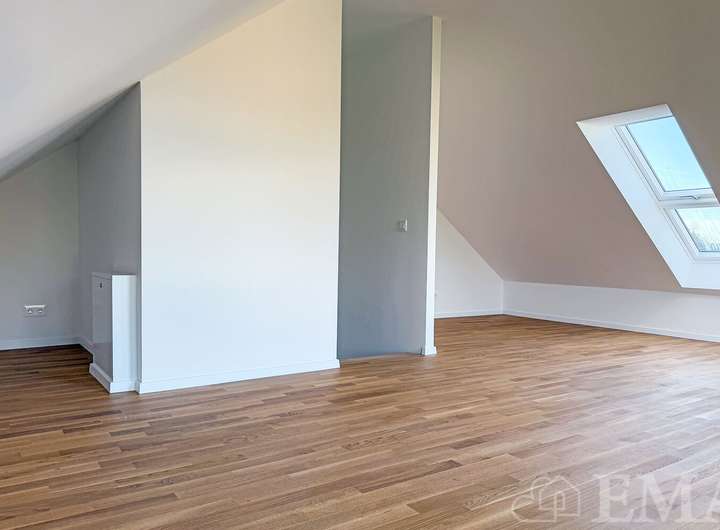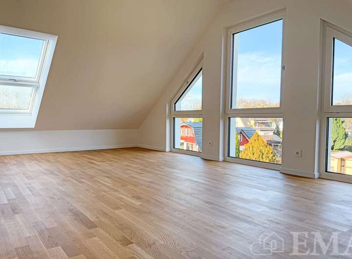 Im Dachgeschoss befindet sich ein Studiozimmer (mit bodentiefen Fenstern in den Endhäusern). Die Wohnfläche im Dachgeschoss beträgt ca. 37 m².