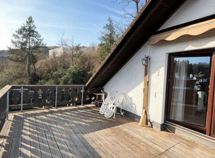 Die Immobilie befindet sich in einer der attraktivsten Wohnlagen von Bad Schwalbach, im ruhig gelegenen Martha-von-Opel-Weg. Das Haus liegt als letztes Gebäude der Straße direkt an einem Waldweg, wodurch ein besonders privates und naturnahes Wohngefühl entsteht. Die erhöhte Hanglage bietet außerdem einen beeindruckenden Panoramablick über die gesamte Stadt und die umliegende Taunuslandschaft.