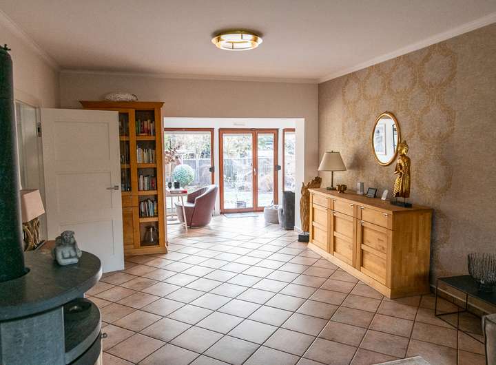 - Fußbodenheizung im EG sowie Bad OG – in den übrigen Wohnräumen Heizkörper, Kamin im Wohnzimmer