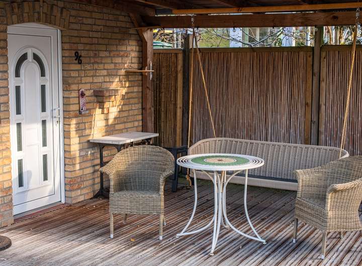 - Gemütliches Gartenhaus mit ca. 16 qm Nutzfläche sowie mit weiterer überdachter Terrasse
