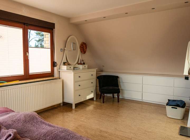 - EG, KG und Bad OG gefliest, OG teils Kork teils Holzfußboden