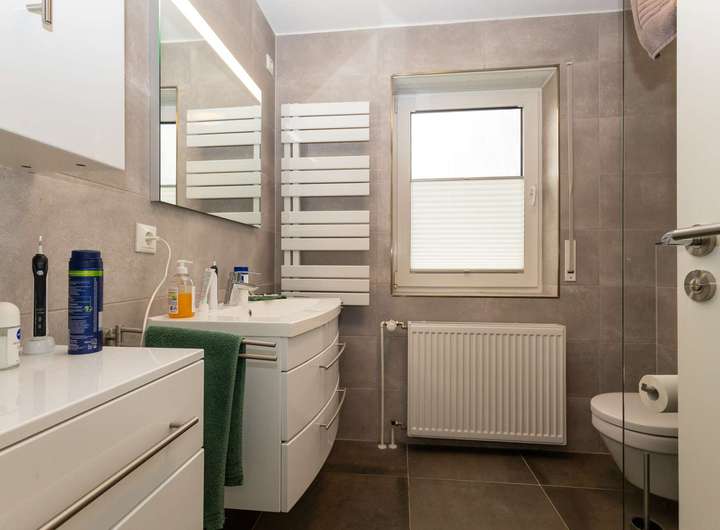 Die hellen Räume werden durch weiße Kunststofffenster mit Isolierverglasung und Außenrollläden angenehm lichtdurchflutet und zugleich gut geschützt. Für behagliche Wärme sorgt eine moderne Gasbrennwerttherme, die erst 2024 erneuert wurde. Im Obergeschoss garantiert zudem eine Klimaanlage auch an heißen Tagen ein angenehmes Raumklima.