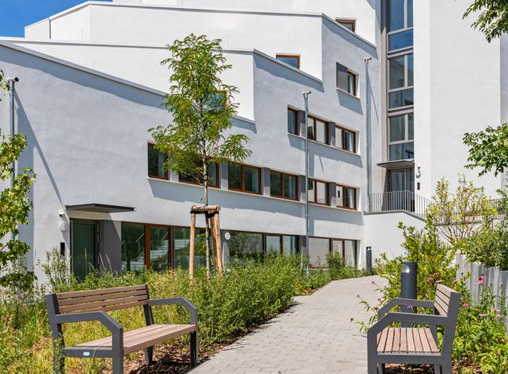Neben der gemütlichen Lobby offeriert das Haus viele Gemeinschaftsflächen, die bei Interesse zu einem regen Austausch zwischen den Bewohnern einladen. Ein vielfältig nutzbarer großer Gemeinschaftsraum mit angeschlossener Küche, eine geräumige Dachterrasse sowie ein hübsch angelegter Gemeinschaftsgarten bringen die Bewohner zusammen, laden zum Feiern ein und fördern die Kommunikation untereinander.