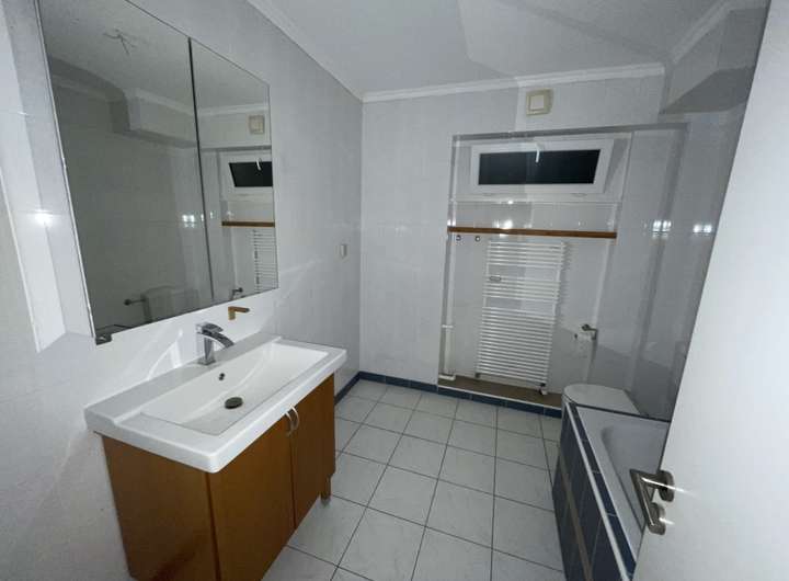 Das Badezimmer verfügt über eine Badewanne, ein Waschbecken und ein WC. Ein Handtuchwärmer sorgt für eine wohlige Wärme im Raum.