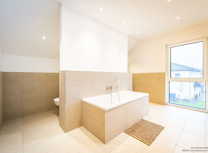 - Tageslichtbad mit Badewanne und ebenerdiger Dusche,